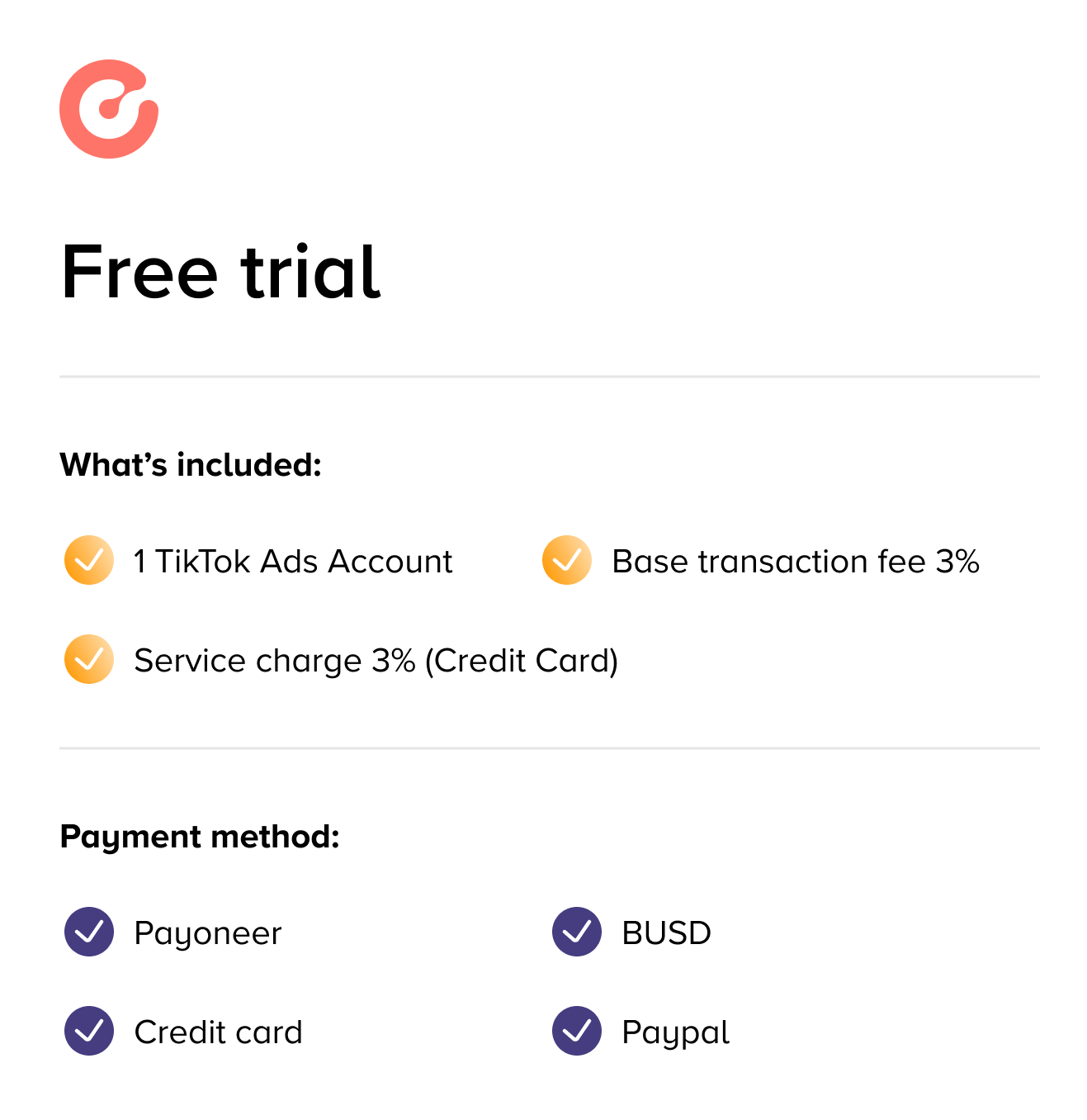 14 day trial to use our agency ad account. A new ad account will be created automatically on our platform and you will have 14 days for trial to enjoy our service