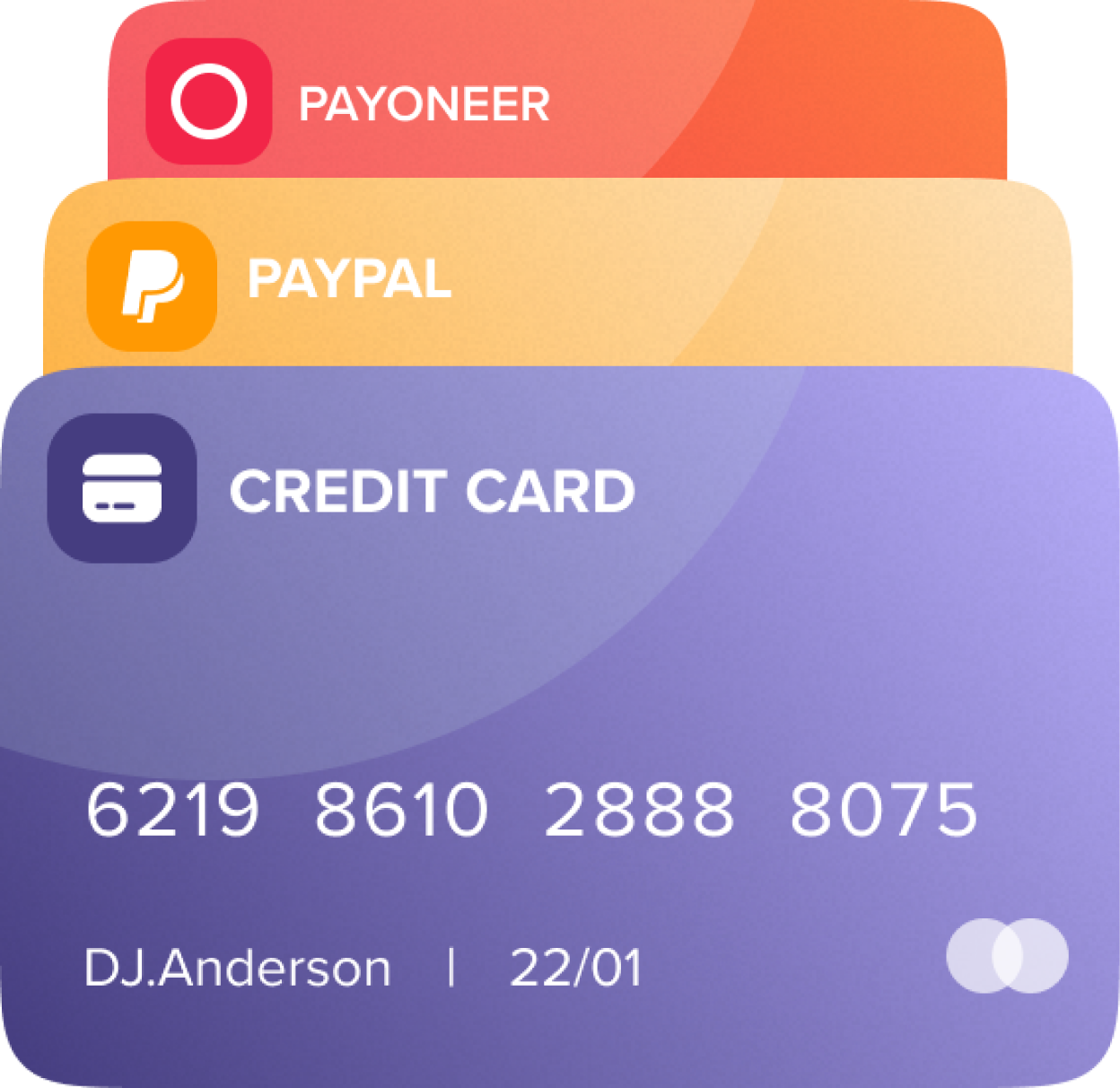 Top up easily with our multiple payment methods: Credit card, Paypal, BUSD, USDT and Payoneer